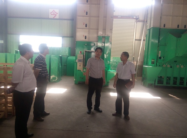 辛局長一行先后參觀了公司生產車間、裝配車間等,詳細了解企業(yè)目前的發(fā)展狀況及生產運營等情況,現(xiàn)場針對目前糧食行業(yè)及谷物干燥行業(yè)存在的問題進行了詳細了解,對于在全國經濟不景氣及同行競爭壓力的情況下,公司產品銷量穩(wěn)步增長表示高度的贊賞和極度的肯定。