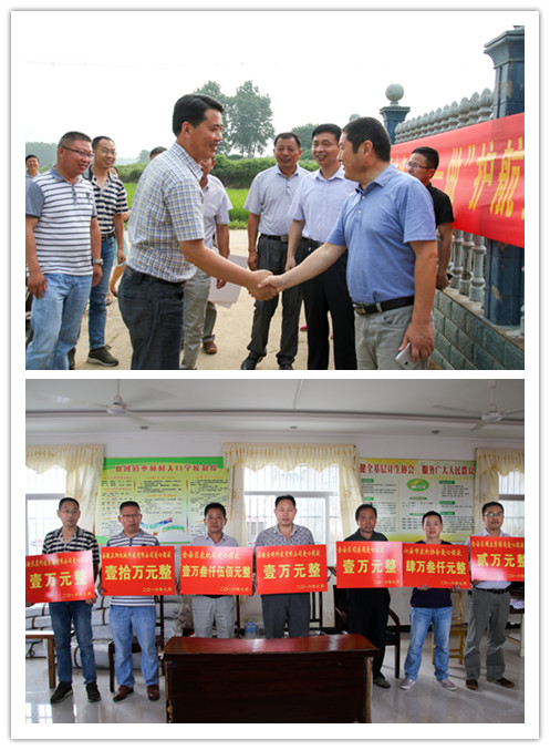 正陽公司總經(jīng)理張為法、辦公室主任張宏明與金安區(qū)區(qū)領(lǐng)導(dǎo)在災(zāi)區(qū)捐款現(xiàn)場